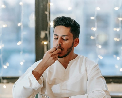 How do you describe someone who pretends to eat something?