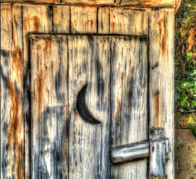 When Jack felt that his out-house was too dark, how did he feel after he put a large hole on the top of the door to let in light?